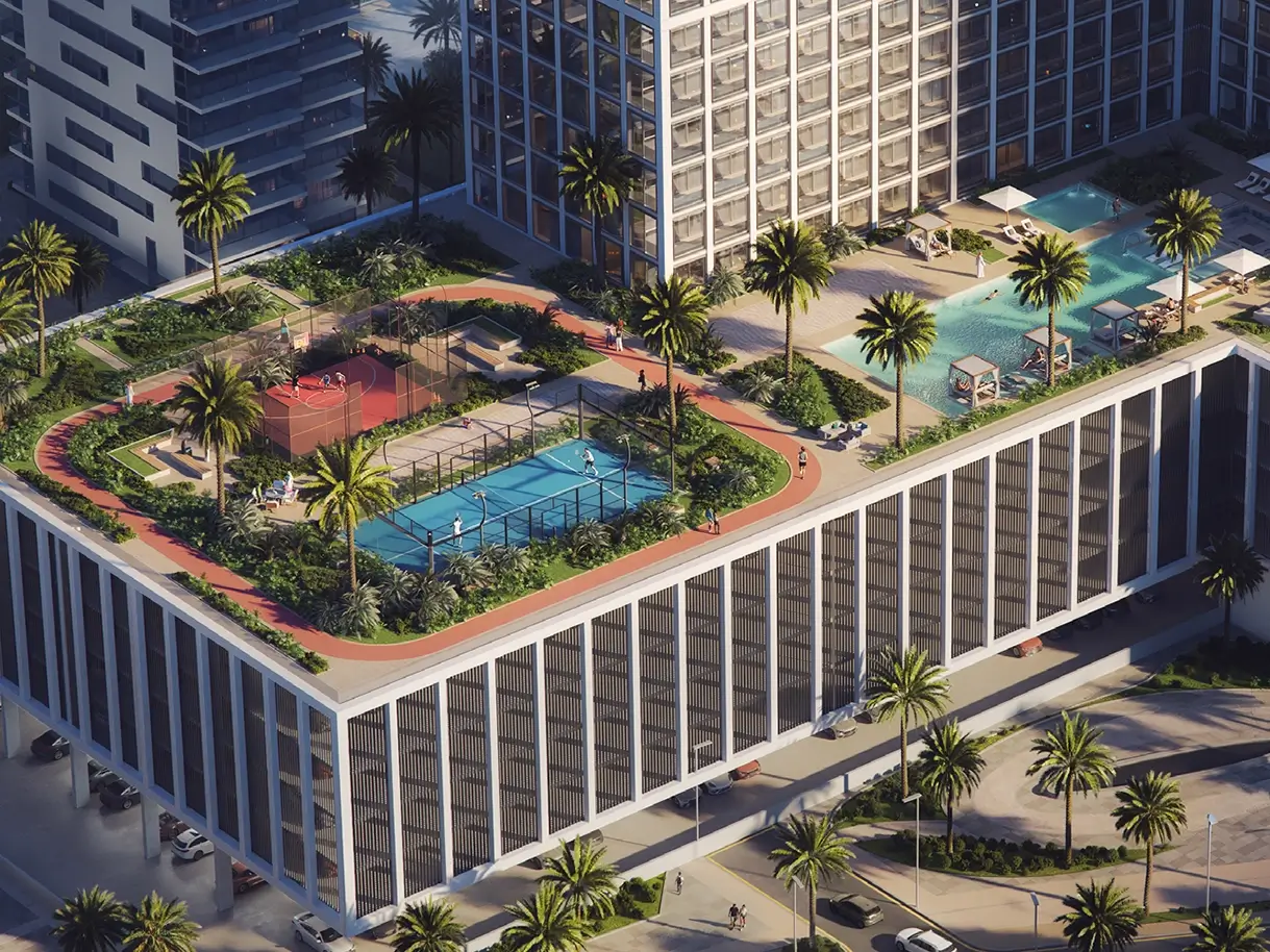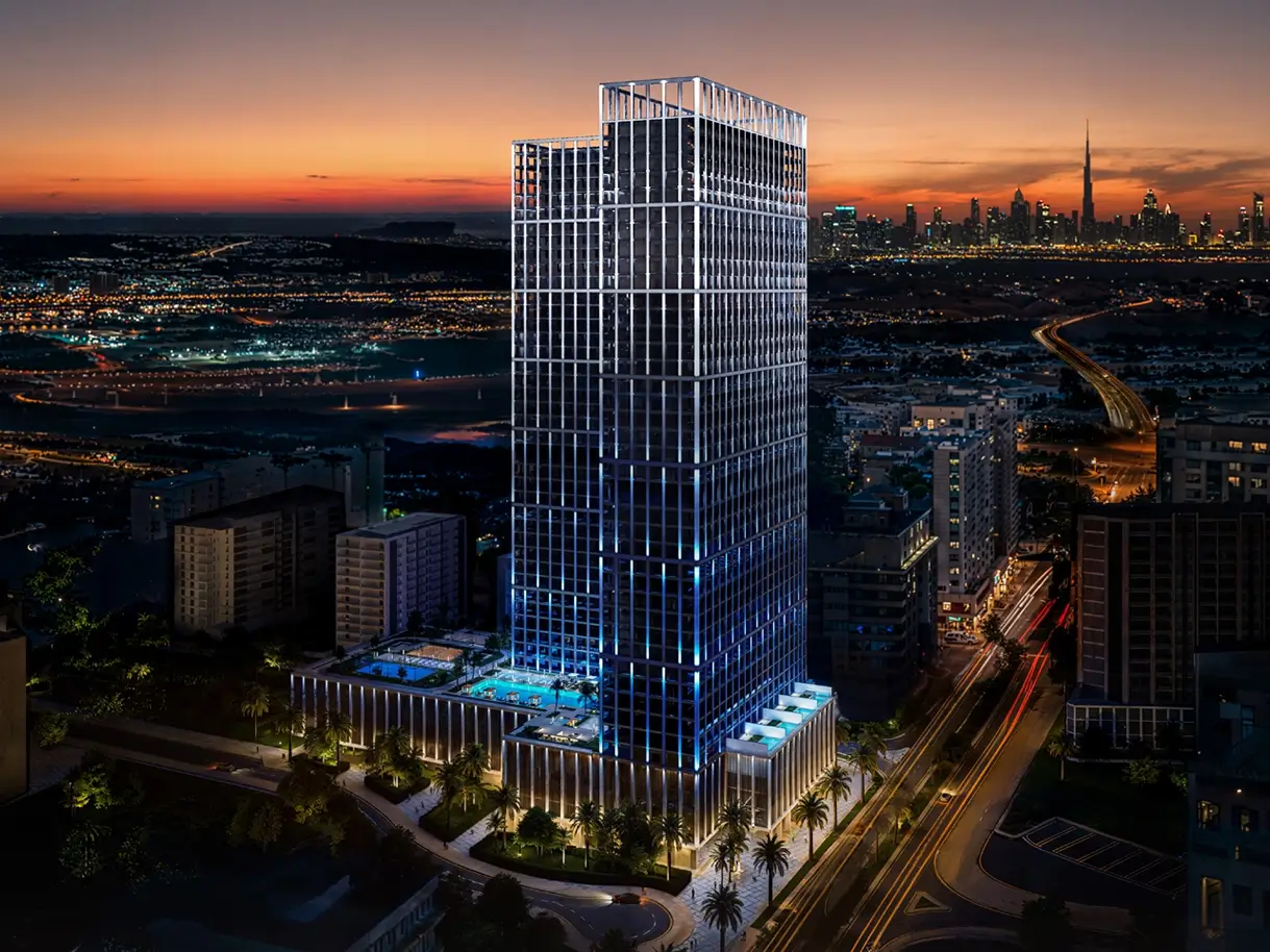 A luxurious residential project with a modern and elegant design by Binghatti, located in the Majan area of ​​Dubai. It is a tower including 36 floors, featuring unique facades, and focusing on providing residential units that offer a balance between tranquility and easy access to the city center.